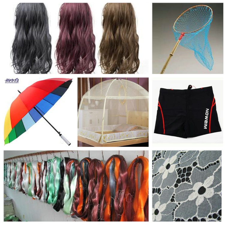 PA用途 渔网、钓鱼线、牙刷毛、假发、泳衣、泳帽、蕾丝面料衣服(锦纶)、地毯、锦纶纱巾、尼龙袜、蚊帐、与蚕丝合纺的锦纶绸面料、与羊毛合纺的耐磨面料、尼龙绳、帐篷、旅行箱、手袋、餐椅脚轮、雨伞、泵叶轮、风扇叶片、阀座、轴承、各种仪表板、汽车电器仪表、冷热空气调节阀、齿轮、